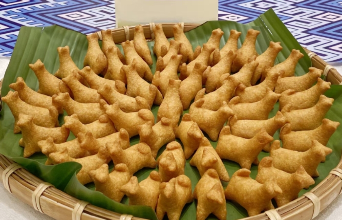 制作卷筒粉,将大米浸泡后磨成的米浆,蒸成薄如蝉翼的粉皮,裹上豆角肉沫或凉薯木耳末,卷成优美的弧度,淋一勺酸甜酱,丝滑入口。米皮的滑,馅料的鲜,酱汁的甘,恰如右江水流过田畴的温柔。