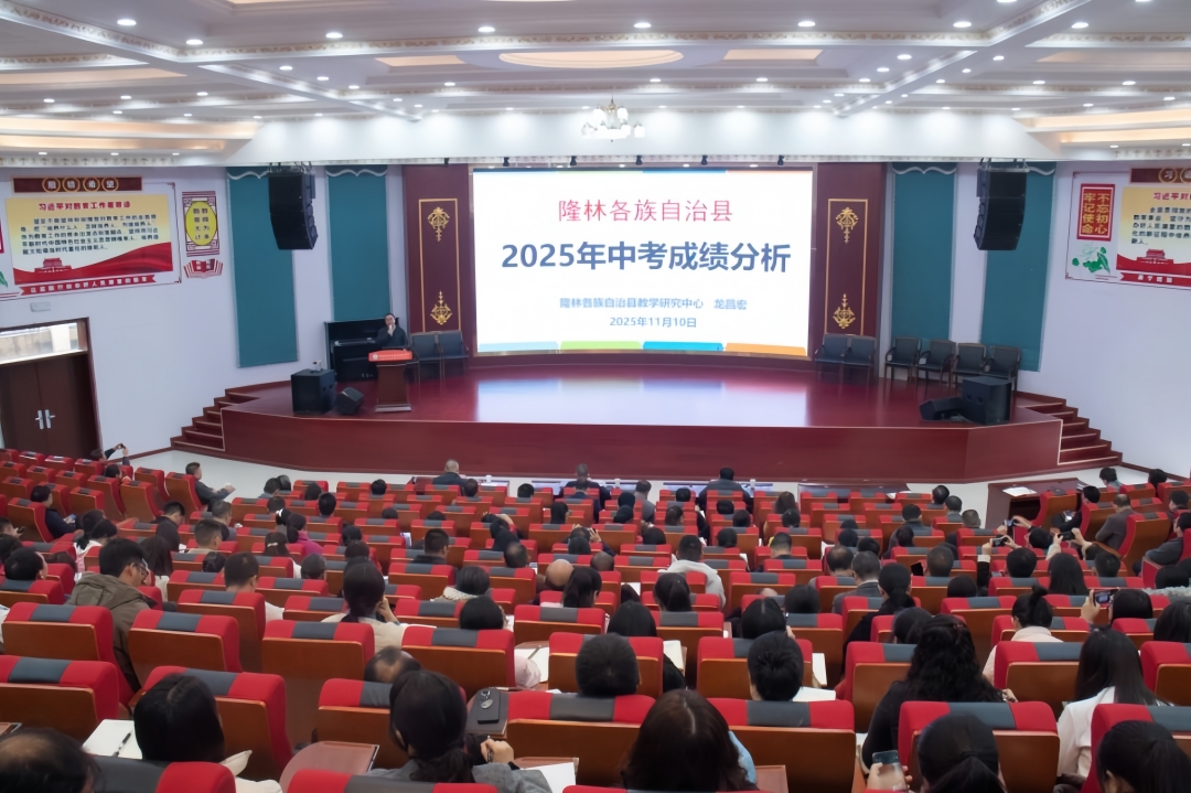 会议议程紧凑有序、内容务实高效。自治县教学研究中心率先按小学、初中、高中学段依次作教学质量分析,以详实数据、精准研判和务实建议,为各学校找准工作着力点;隆林中学、民族高中、隆衢学校3所高中先后复盘2025年高考质量,分享2026年高考备考策略,为县域高中教育协同提升搭建交流平台。