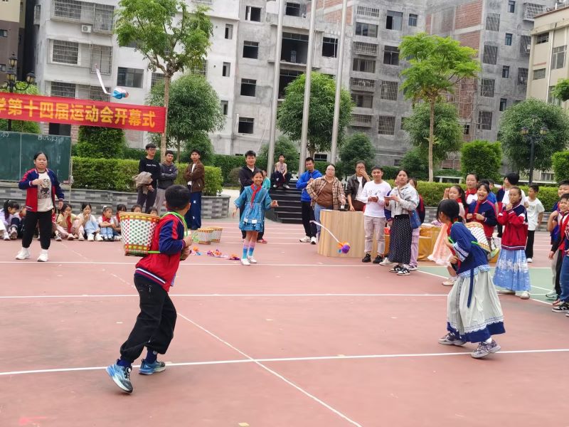 本次运动会的一大亮点,是该校与岑溪市第六小学联合开展的抛绣球友谊赛。侗族、瑶族、壮族、汉族等各族学生手持五彩绣球,在奔跑协作中抛接传递,既体验了传统民俗乐趣,更增进了民族间的了解与友谊,让“铸牢中华民族共同体意识”的种子在赛场生根发芽。