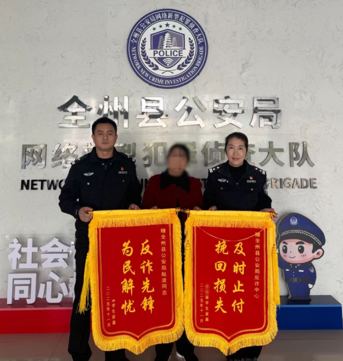 11月5日,刘女士家属专程送来两面锦旗,向全州县公安局网络新型犯罪侦查大队的高效处置、主动担当和为民情怀,表达最诚挚的谢意。