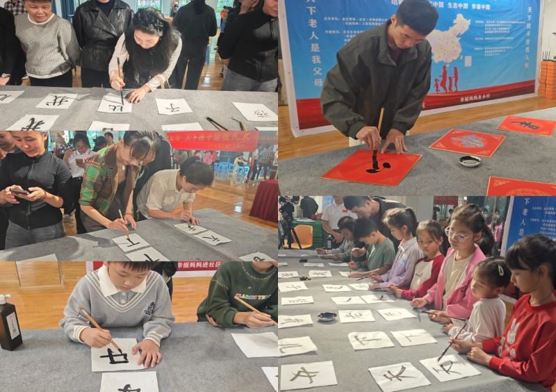 在才艺表演环节,一段精彩的拉丁舞展示赢得现场阵阵掌声。随后,非凡舞蹈艺术中心的郭老师带来《好形态,好妈妈,好家风》公益形体课,通过专业指导帮助妈妈们缓解因长期劳累带来的肩颈问题,找回身体的舒展与自信。她强调“妈妈安,则家安;妈妈绽放,则家兴旺”的理念。书法体验课上,奥丰艺术教育的老师邀请妈妈与孩子共同执笔,书写“天下老人是我父母,天下孩子皆我儿女”的温馨语句。在笔墨交融之中,与会者深切感受到“老吾老以及人之老,幼吾幼以及人之幼”的中华文化底蕴。活动最后设有礼品分发与合影环节,现场气氛温馨而热烈。