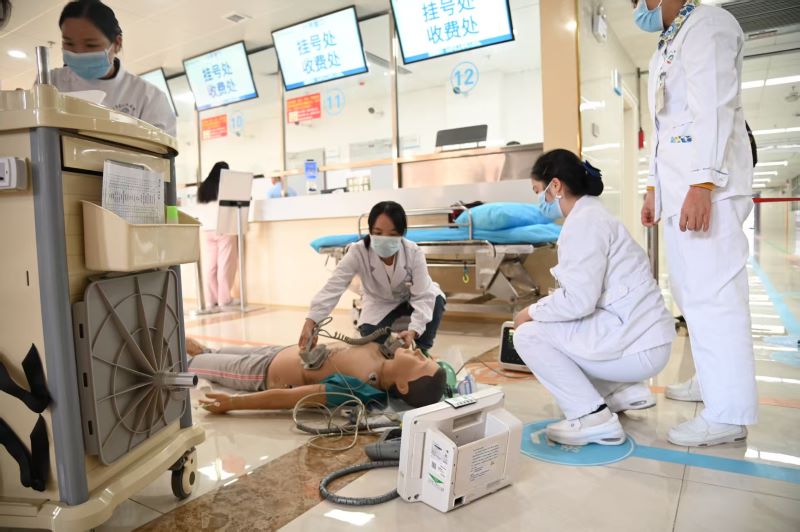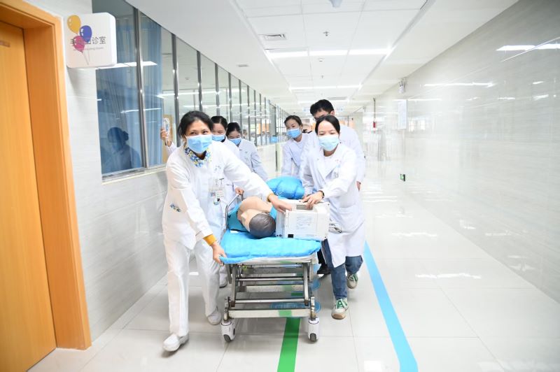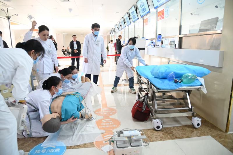 整个演练严格对标《国际心肺复苏指南》标准,重点考核团队分工协作、急救设备操作熟练度、医患沟通技巧及应急预案执行效率。经过紧张施救,患者恢复自主呼吸及脉搏,随后被快速转运至急诊科抢救室进一步救治。