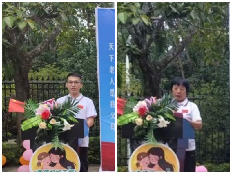 谦和家文化创始人陈妙真向慈爱文化负责人王秀慈授接力棒并佩戴徽章,象征着母亲赋能事业的薪火相传。