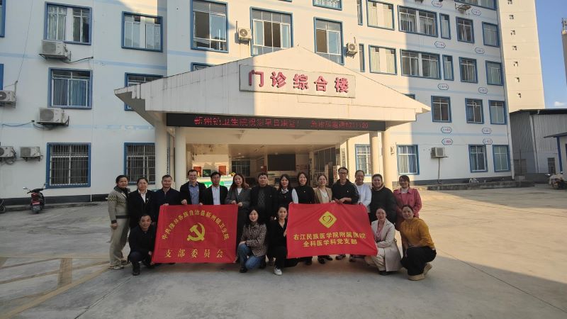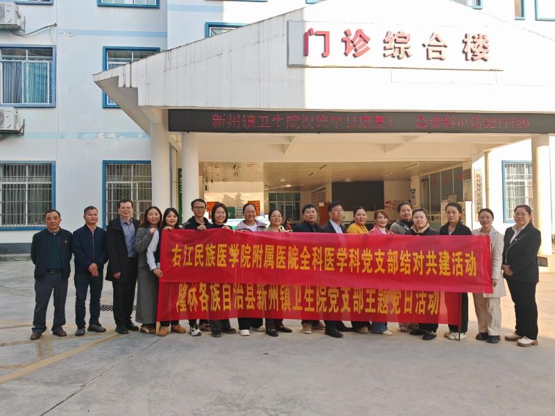 最后,附属医院党委代表、全科医学科党支部党员代表,与新州镇卫生院党支部支委及党员代表合影留念,定格党建共建美好瞬间。通过党建引领打破层级壁垒,实现上下联动、资源共享,切实将医疗服务送到群众“家门口”,为基层医疗提质增效注入红色动能,彰显了医联体党建引领业务、服务民生的使命担当。