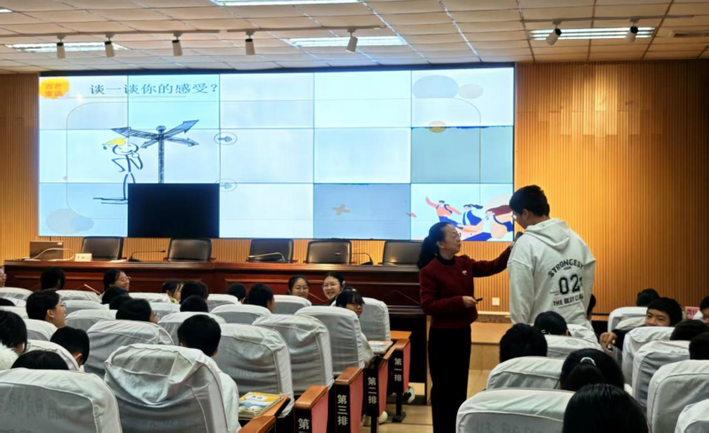 课堂上,罗柳洁老师以情绪为主题,从青少年的心理特点出发,围绕“情绪的类型”“情绪的影响”“情绪与健康的关系”以及“如何调控情绪”四个维度展开讲解。她用亲切生动的语言,引导学生走进情绪的世界,理解每一种情绪背后的意义与价值,帮助他们学会接纳自我、正视感受。
