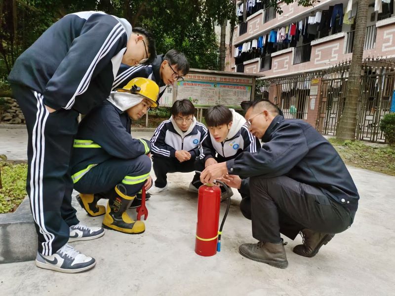 安保人员向参与训练的学生详细讲解了消防装备的相关知识和演示灭火器的使用方法。从消防头盔的正确佩戴方法,到消防服的穿着要点,再到消防安全设备的使用,安保人员都进行了细致的示范与指导,确保学生们能够准确掌握各项操作要领。(韦光旭 张宗臣)
