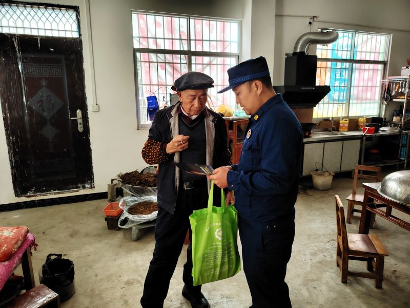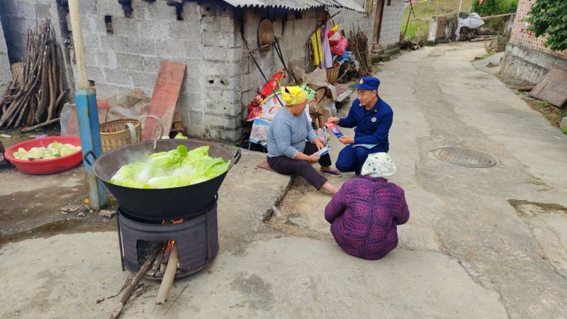 “大爷,天气越来越冷,注意用火用电,这是消防安全宣传单页,有空的时候认真看一看”。活动中,大队宣传人员向村民发放《农村消防安全手册》、《电动自行车安全使用指南》等宣传资料,并结合农村实际,用通俗易懂的语言为村民们细致讲解了家用电器火灾的防范要点、日常用火用电用气的注意事项、如何正确拨打火警电话,以及灭火器、消火栓等常见消防设施器材的使用方法。宣传人员不断叮嘱村民要养成“三清三关”的良好习惯,从源头上降低火灾风险。同时,帮助群众查找家中消防安全隐患,纠正卧床吸烟、随意丢弃烟头、私拉乱接电线、违规使用大功率电器及电动车“入户充电”等危险行为,反复提醒群众要落实好家庭防火“三清三关”,从源头避免火灾事故发生,确保消防安全。