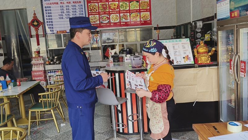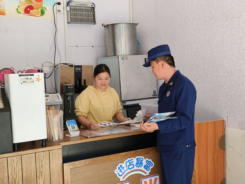 宣传过程中,大队宣传人员为经营者发放消防安全知识宣传资料,采用消防知识讲解与故事案例分析相结合的形式,讲解了火灾危害、常见火灾隐患、引发火灾的主要原因等小常识,并叮嘱其将所学消防知识带回家,让家人也学习消防知识,共同创建良好的消防安全环境。同时,宣传人员重点对各场所是否落实消防安全管理制度并组织开展日常的防火巡查工作,灭火器、应急照明灯是否完好无损,安全出口、消防通道是否堵塞,安全疏散是否符合规范,场所内是否违规用火、用电、用气等情况进行了排查。并提醒他们不要私接乱拉电线,不能超负荷用电,及时清理易燃杂物,保持疏散通道畅通无阻等关键内容,严防火灾事故发生。