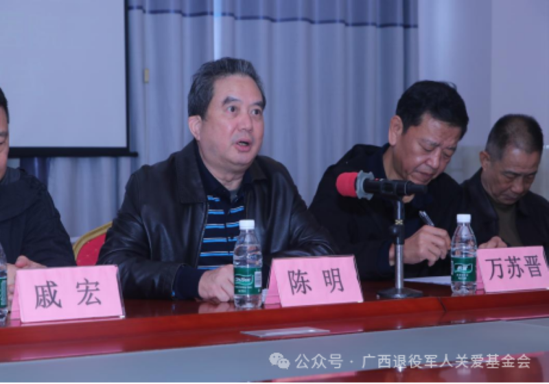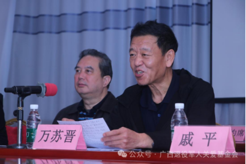 在桂荣休的原广西军区副司令员万苏晋少将、原广西陆军预备役师师长戚平大校应邀出席本次退役军人健康关爱公益活动。万将军满怀深情地说,广西地处祖国西南边陲,有着漫长的陆地边界和海防线,一代又一代军人在守边固防中抛头颅洒热血,为保卫边陲安全筑起了一道坚不可摧的钢铁长城。广西籍军人在全国全军享有盛誉,在抗日战争、解放战争和抗法援越、抗美援越、自卫反击作战中,以坚强的战斗意志与无惧牺牲的作风打出了“狼兵”的赫赫威名,深受人民群众信任和爱戴。老首长指出,习主席提出“要让军人成为全社会尊崇的职业”,如何做到这一点,就是军人要敢于牺牲、退伍不褪色,在战时赢得社会各界支持,退伍后得到尊重和关爱。今天举行的签约、授匾、揭牌仪式,看似简单,实则意义深远,既是对退役军人的尊崇、认同和关爱,更是对现役官兵和准备服役的广大青年的鼓舞与激励。老首长还勉励参加活动的退役老兵们保重好身体,继续为国家、为国防、为家乡建设再立新功。