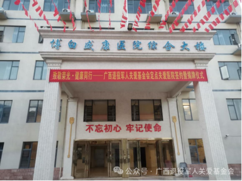 今日广西玉林讯 11月18日上午,盛康医院彩旗招展、锣鼓喧天,广西首家基层“退役军人定点关爱医院”签约揭牌仪式在博白县凤山镇隆重举行。