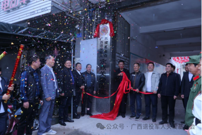 图为嘉宾为“广西退役军人关爱基金会定点关爱医院”(博白盛康医院)揭牌