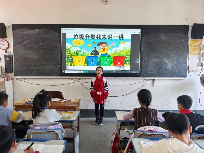 主题班会课上,垃圾分类知识的学习别开生面。低年级教室里,老师借助“垃圾分类 从我做起”的童趣课件,用动画故事讲解不同垃圾的“家”;高年级课堂中,学生们站上讲台,以“垃圾分类我来讲一讲”为主题,结合生活实例分享分类小妙招,从“废电池为何属于有害垃圾”到“旧书本如何循环利用”,一个个问题引发热烈讨论。师生间的互动问答、小组内的观点碰撞,让垃圾分类的意义在思辨中愈发清晰,环保意识在课堂里深深扎根。