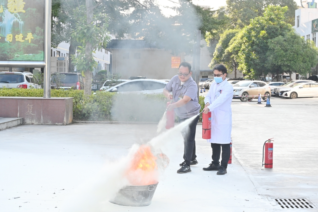 随后,消控室现场演示灭火器“提、拔、握、压”操作规范,设置模拟火点组织全员亲自进行了灭火器的实际操作演习,确保每位参与者熟练掌握初期灭火技能。