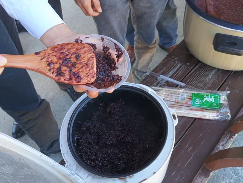 目前,每天到这里参观、考察、学习、取经的络绎不绝。记者当天正碰上县农业农村局组织的全县村干部现场学习取经,这些村干部们对这里的水稻长势赞不绝口!活动结束时,金稻苗公司安排村干部们品尝刚刚收获的旱黑米饭。用基地直供的新鲜旱黑米蒸煮出的米饭,米香浓郁,口感舒适,无需配菜也能让人回味无穷。这,才是真正属于土地的原始味道。