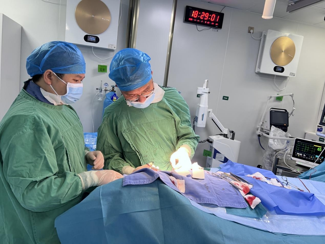 该院心内科主任许华聪副主任医师组织全科详细讨论黄奶奶病情及病史,考虑为Ⅲ度房室传导阻滞。在与黄奶奶及家属充分沟通并取得知情同意后,决定为黄奶奶行双腔永久性心脏起搏器置入术。并启动该院柔性引进人才协作机制,邀请上级医院心脏介入治疗的资深专家前来协助手术。术前,全面评估黄奶奶病情、身体状况及手术禁忌,制定了“精准穿刺、微创植入、安全护航”的个性化手术方案,并充分告知黄奶奶及家属手术流程、风险与预期效果,缓解其焦虑情绪。