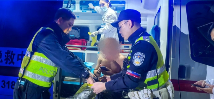 此时夜间气温较低,河水冰冷刺骨,男子的行为十分危险。 为保障该男子的生命安全,执勤民警一边迅速联系消防救援部门和120救护车,一边展开紧急搜救。