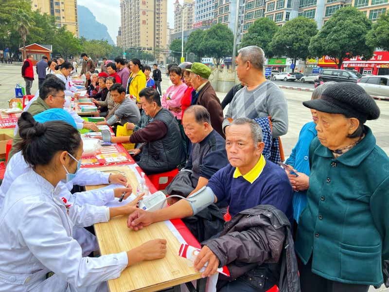 “阿婆,您放心,一起吃饭这些日常接触,都不会染上艾滋病。”县疾控中心的护士用软糯的本地话给几位老人讲解道。手里的宣传册上,“传播途径”“预防方法”等关键信息都标了醒目的红框。咨询区的长桌前早已排起队伍,测血糖、问用药、领物资,医疗专家团队“一站式”服务让群众少跑路;旁边的互动区更热闹,青年志愿者用快板演绎的防艾段子朗朗上口,“答对就送防疫包”的知识抢答,让孩子们都追着要“答题”,现场笑声与知识点一同传播。