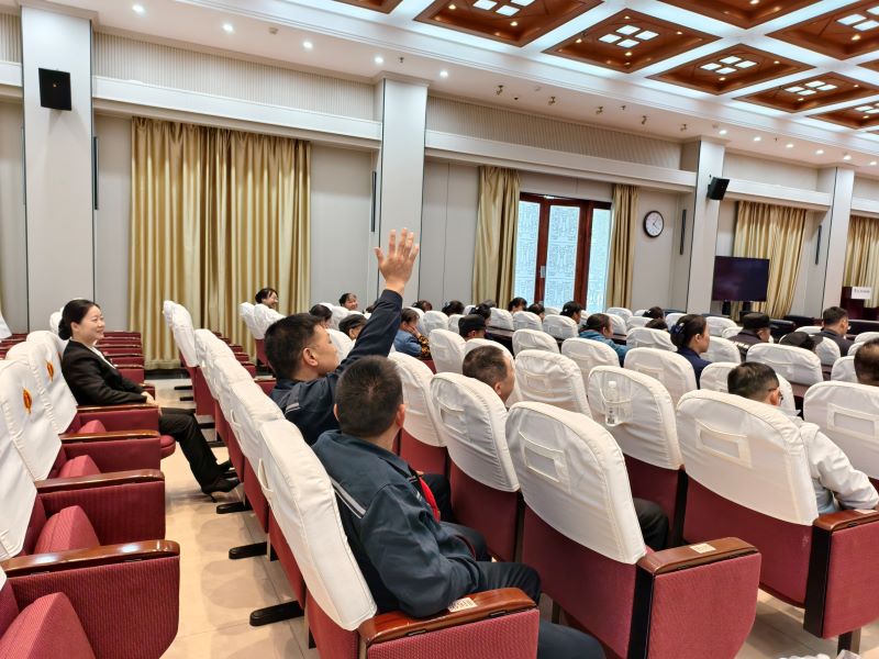 “灭火器的压力表指针指向哪个颜色区域表示正常?”“发生火灾时如何拨打报警电话?”有奖问答环节,大家踊跃举手、积极抢答,消防救援人员对回答准确的职工现场发放小礼品,以互动形式巩固学习成果,现场气氛热烈。