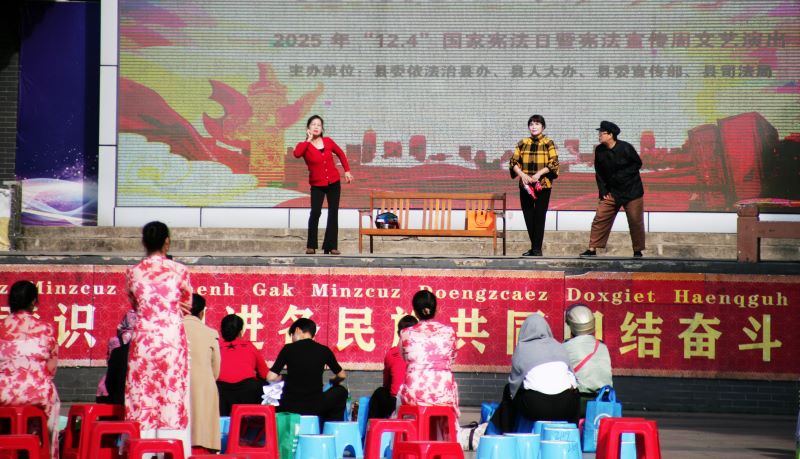 今日广西桂林讯 学习宣传贯彻习近平法治思想,推动宪法深入人心。2025年12月2日,广西桂林市恭城瑶族自治县县委依法治县办、县人大办、县委宣传部、县司法局等单位联合在县城文武广场举办“12.4”国家宪法日暨宪法宣传周文艺演出,吸引市民群众到场观看,在寓教于乐中学到与法律有关的知识。 (郑智敏)