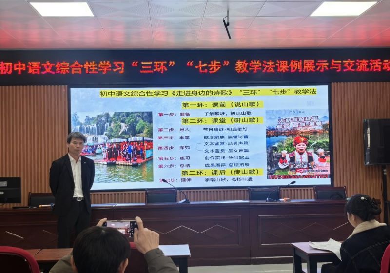 此次成果展示活动的成功举办,不仅集中展现了大新县在边境地区初中语文综合性学习教学研究方面的丰硕成果,更搭建了教师交流学习的优质平台,进一步明确了“三环七步”教学法的推广方向,对提升全县初中语文教学质量、促进教育均衡发展具有重要意义。(赵杏莹)