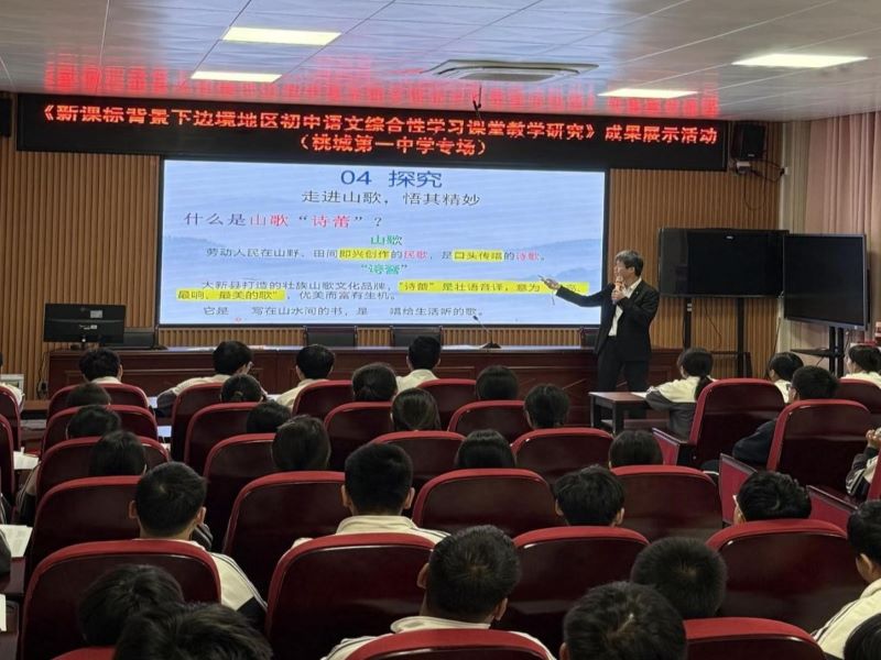 为深入推进全县初中语文教学改革,展示与推广课题研究成果,12月2日上午,大新县“新课标背景下边境地区初中语文综合性学习课堂教学研究”成果展示活动在桃城镇第一中学隆重举行。县教育局教研室领导、全县各初中语文教研组长、骨干教师代表及课题组成员齐聚一堂,共同探讨边境地区语文教学改革新路径,推广“三环七步”教学法实践成果。