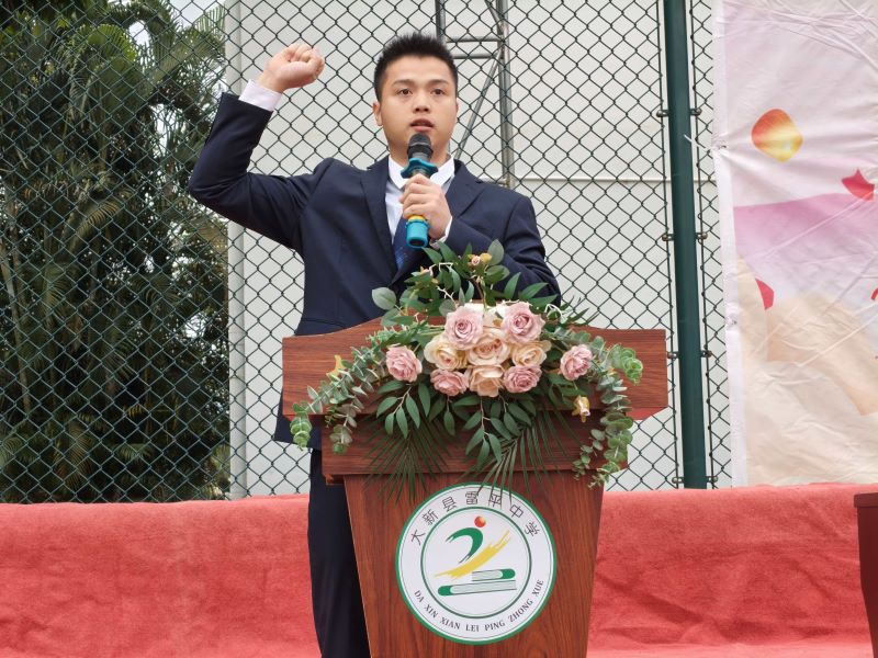 主持人黄世鹏老师依次介绍莅临本次开幕式的嘉宾:大新县雷平镇党委副书记、大新县雷平镇人民政府镇长许世宝同志,大新县教育工会主席、教育局体卫艺股副股长农智同志,大新县雷平镇党委宣传委员黎雯丽同志,大新县雷平镇车站村完小校长刘东江同志,大新县雷平镇振兴村完小校长卢福平同志,大新县雷平镇中心小学副校长农嵇同志,以及来自大新县雷平镇各小学的体育老师们。黄勇志副校长对出席本次开幕式的各位领导、老师、同学们致以亲切的问候,他盼望全校师生能在运动场上充分展现我校团结奋进、蓬勃向上的精神风貌,共同营造一个和谐、欢乐的运动会氛围。大新县雷平镇党委副书记、雷平镇人民政府镇长许世宝同志为本次运动会致辞,他寄语运动员奋勇拼搏、赛出风采,裁判员公正执裁、工作人员做好保障,希望大家将体育精神转化为奋进动力,并预祝运动会顺利举办。裁判员代表赵小钧老师宣誓,表示公正裁判,确保比赛公平公正进行。运动员代表黄若琪同学宣誓,表示将严格遵守竞赛规则,赛出水平,赛出风格。校舞蹈队身着绚丽多彩的服装登场,她们伴随着动感的音乐节拍表演舞蹈,为赛场增添无限的生机与魅力。最后,学校党支部书记、校长何溯昌满怀激情地宣布,大新县雷平中学“根深志远展风采,枝繁叶茂竞芳华”校园运动会正式开幕,在鞭炮声中,本次运动会开幕仪式圆满结束。