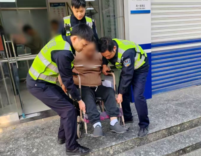 12月1日16时许,一位坐轮椅的男士准备到秩序中队办事大厅办理驾驶证违章处理业务,行至大厅门口的台阶前犯了难。正在附近执勤的民辅警见状,立刻上前合力将他连人带轮椅平稳抬上台阶,一路护送到办事窗口。