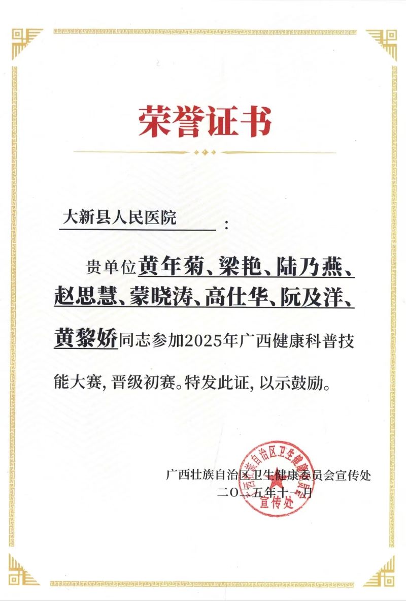 大新县人民医院亮相广西健康科普技能大赛初赛 展现科普专业风采