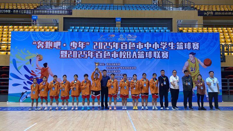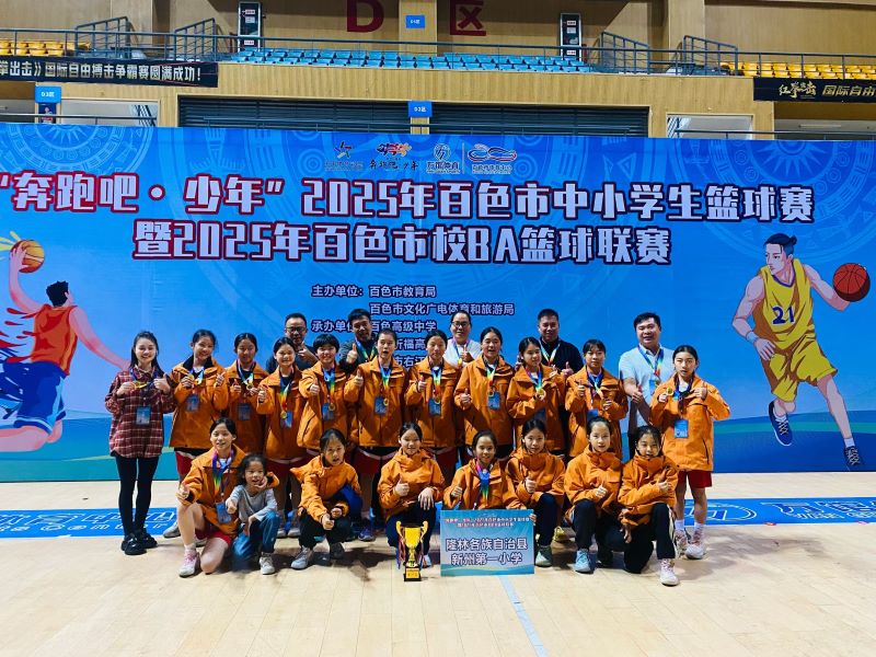 今日广西百色讯 12月8日下午,由百色市教育局、百色市文化广电体育和旅游局主办的——“奔跑吧·少年”2025年百色市中小学生篮球赛暨2025年百色市校BA篮球联赛圆满落幕。隆林各族自治县新州第一小学学生女子篮球队,继2022年、2023年之后,再次捧得该项赛事冠军奖杯,实现三冠加冕。