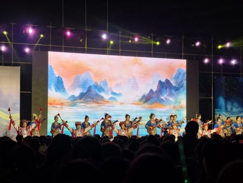 学校非遗音乐表演团带来的节目《承今昔・被弦鸣》,为本次艺术节拉开了序幕。铜鼓和侗琵琶的悠扬韵律与现代编曲巧妙交融,瞬间点燃现场气氛。