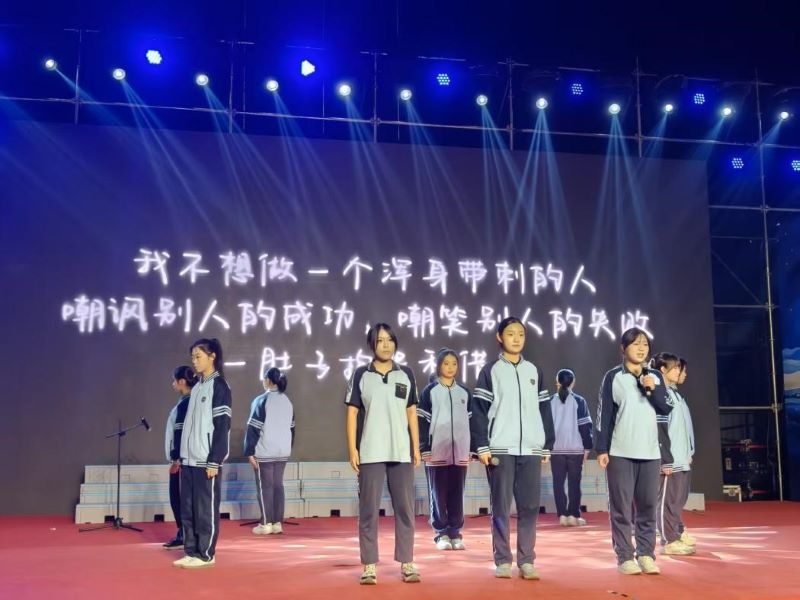 高二4班的歌舞《热血追光》活力四射,展现了十四中学子昂扬向上的精神风貌;高一1班的合唱《改变自己》则用整齐而充满力量的歌声,传递出新时代青年自我革新的勇气。心理社同学自编自导自演的情景剧《在友谊中照见自己》,以贴近校园生活的故事引发全场共鸣,诠释了健康成长与同伴支持的重要意义。