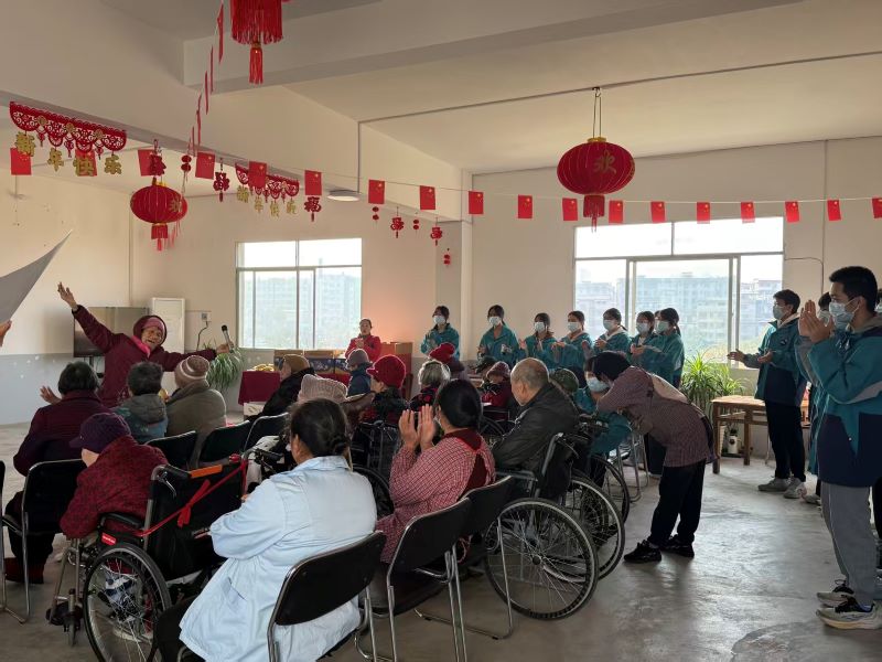 作为回应,老人们也热情地为志愿者们表演了节目。他们用质朴的表演展现出乐观向上的生活态度,赢得了志愿者们的阵阵喝彩。