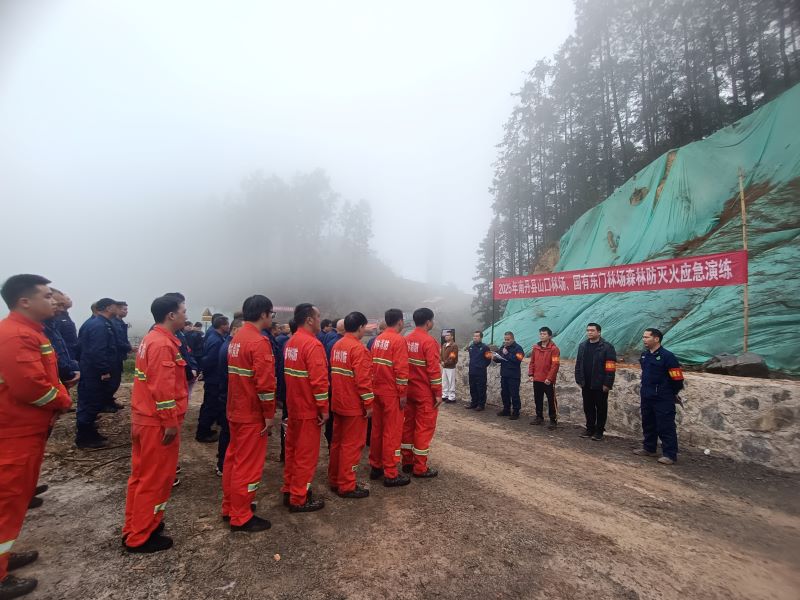 今日广西河池讯 为进一步强化跨区域森林防灭火应急处置能力,检验联防联控协同作战水平,切实保障森林资源和人民群众生命财产安全,12月12日上午,南丹县山口林场联合广西壮族自治区国有东门林场,在山口林场长湾站林地共同开展森林防灭火实战演练。两地林场干部职工、应急扑火队队员共60余名参加演练,两地林场主要负责人及南丹县林业局、南丹县应急管理局有关领导到场观摩指导。
