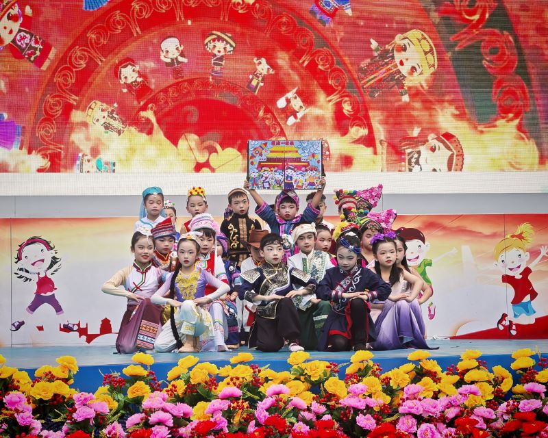 活动现场,舞台上异彩纷呈,孩子们以饱满的热情演绎着各民族的经典文艺节目。台下欢呼声此起彼伏,师生们在沉浸式的体验中感受着各民族文化的独特魅力,也体会着“各民族像石榴籽一样紧紧抱在一起”的深刻内涵。