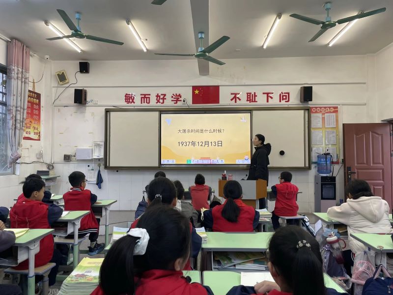 班会课上,班主任们通过播放纪录片片段、展示历史图片、讲述英雄故事等形式,带领学生重温南京大屠杀的惨痛历史:30万同胞惨遭屠戮,无数家庭支离破碎,古老的南京城在战火中满目疮痍。当屏幕上浮现出遇难者名单墙、幸存者含泪的讲述时,教室里鸦雀无声,孩子们的眼中满是沉重与痛心。