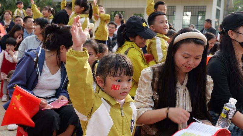 活动以共读、情景演绎、英雄讲述等形式传承红色基因,厚植家国情怀。临高县公安局民警带来深入人心、警醒有力的普法三句半;亲子家庭手捧书卷,齐声诵读《少年中国说》,“少年强则国强”的誓言铿锵回荡;加来金太阳幼儿园献上情景诵读《跨时空对话》,闻会幼儿园符闲铭小朋友深情讲述黄继光英雄事迹,令观众深切体会安宁生活的来之不易;压轴环节中,新盈镇德斯堡幼儿园呈现《诵读家书 缅怀先烈》节目,一封封红色家书的诵读,传递着先辈深沉而坚定的家国信仰。