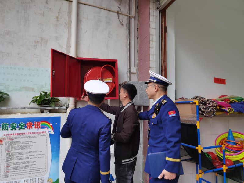 今日广西百色讯 为切实加强幼儿园消防安全管理,及时消除校园火灾隐患,保障师幼生命财产安全,12月23日,广西百色市乐业县消防救援大队深入辖区幼儿园开展专项检查,全力筑牢校园消防安全“防火墙”。