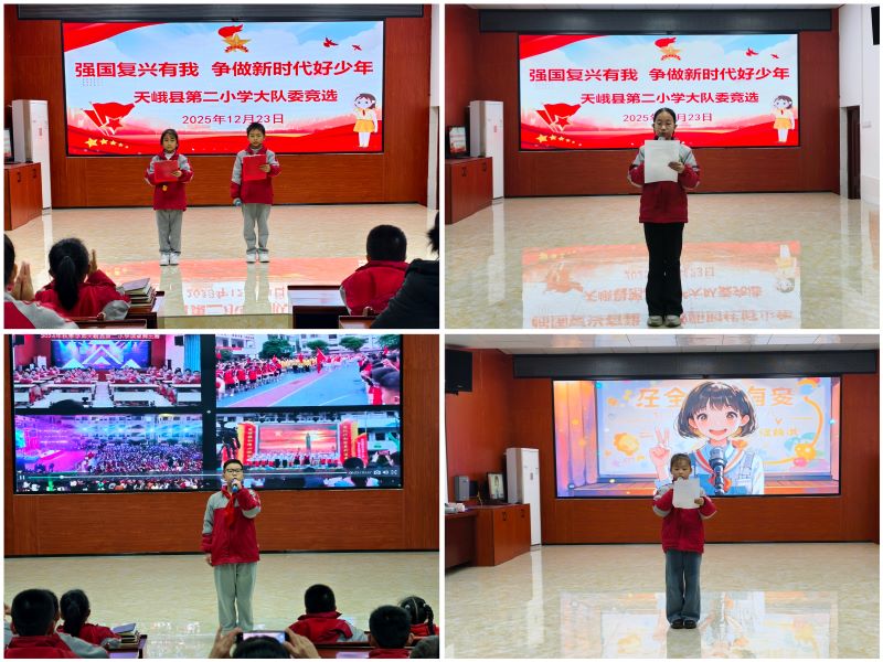 活动现场,参选队员手持稿件自信演讲,围绕竞选理念、服务设想等内容进行展示,用稚嫩却坚定的表达展现出新时代少年的责任与担当。