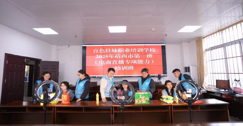 图为百色壮妹职业培训学校2025年靖西市第一班(电商直播专项能力)培训班