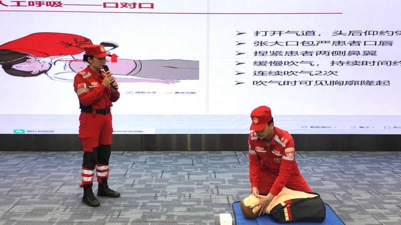 广西壮小安应急安全科教中心的专业教官,向与会者详细讲解了急救流程与操作要点