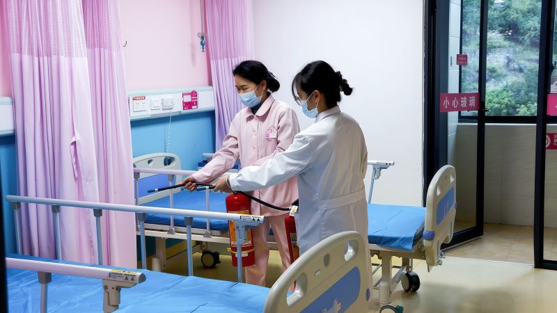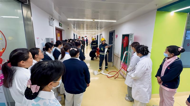 演练模拟住院部3楼病房突发火情。值班医护人员发现火情后,立即启动应急预案:第一时间上报火情、组织初期灭火、有序疏散患者。随着火势发展,医院微型消防站应急力量迅速响应,携带专业设备赶赴现场开展协同处置。演练过程严格按照“发现-上报-初期处置-专业响应”的应急流程展开,各环节衔接顺畅,人员配合密切,有效检验医院应急响应机制的科学性和实用性。