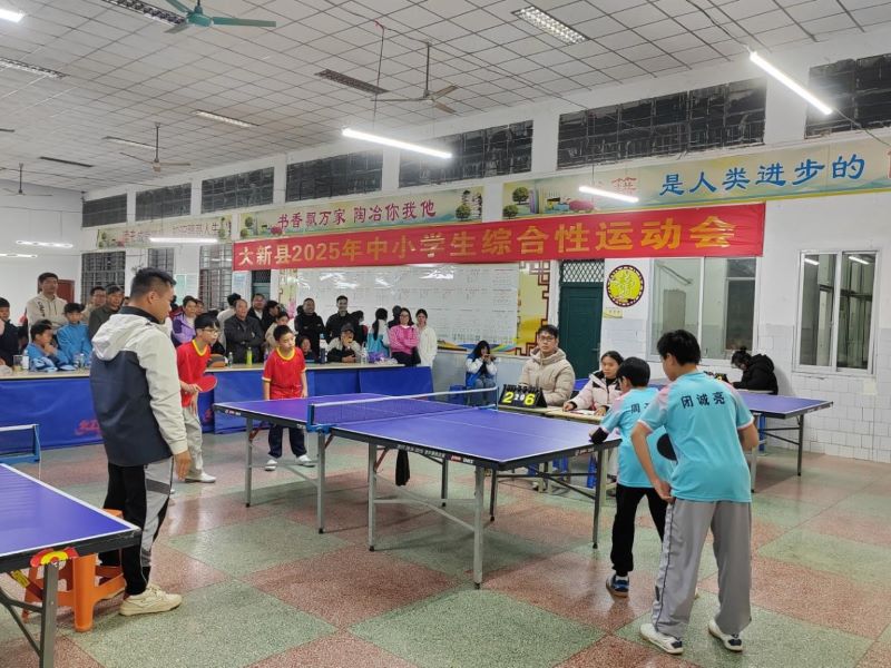 2025年12月27日至28日,大新县2025年中小学生综合性运动会在实验中学、桃城第二小学圆满收官。此次盛会由大新县教育局主办,大新县实验中学、大新县桃城第二小学、大新县职业技术学校承办,以“运动、健康、快乐”为主题,吸引全县12所初中、19所小学数千名学子参与,在篮球、足球、乒乓球三大项目中展开356场角逐。