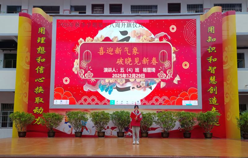 12月29日,天峨县第二小学开展2025年秋季学期第十八周升旗仪式,本次仪式以“喜迎新气象,破晓见新春”为主题,五(4)班杨雪琦同学作为代表进行主题演讲。