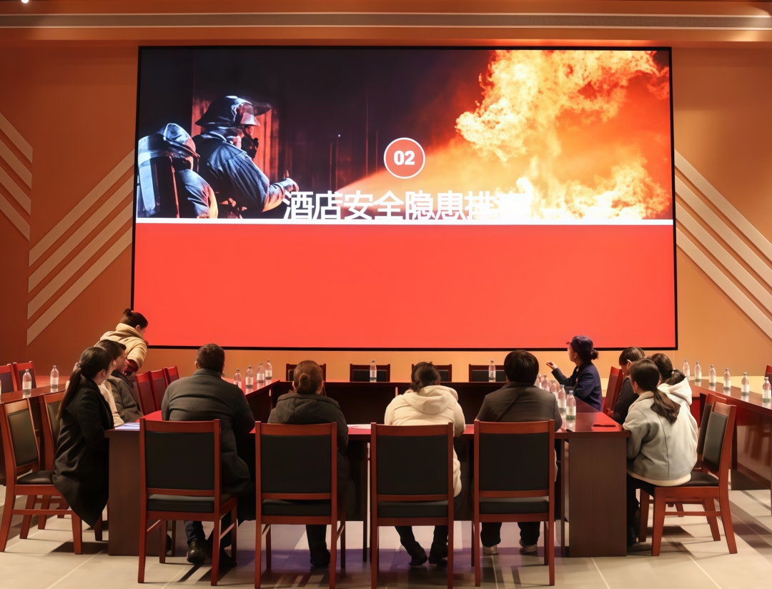 培训采用“理论讲解+实操演练”模式。理论环节,消防员结合酒店火灾案例,重点讲解灭火器“提、拔、握、压”操作要领、防烟面罩正确佩戴步骤,强调客房、厨房等重点区域火灾隐患排查要点,明确员工在火灾报警、初期处置、人员引导中的岗位职责。随后,组织模拟客房起火场景,指导员工快速引导宾客低姿捂鼻、沿疏散通道有序撤离,并在酒店空旷区域设置油盆火点,演示初期火灾扑救技巧,让参训人员分组实操灭火,手把手纠正动作偏差。