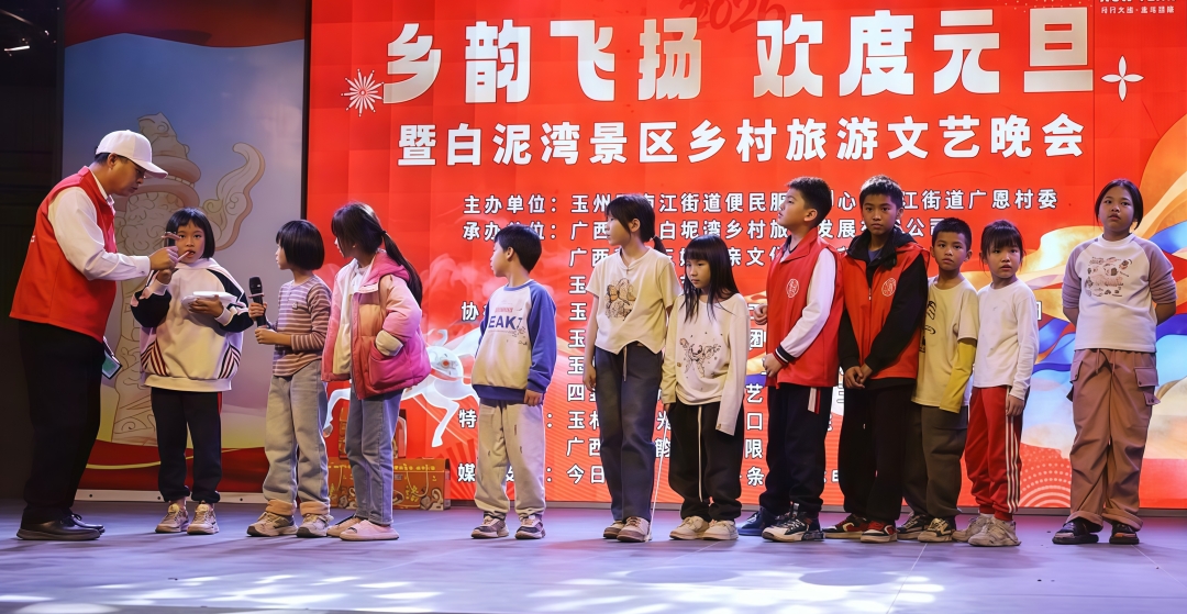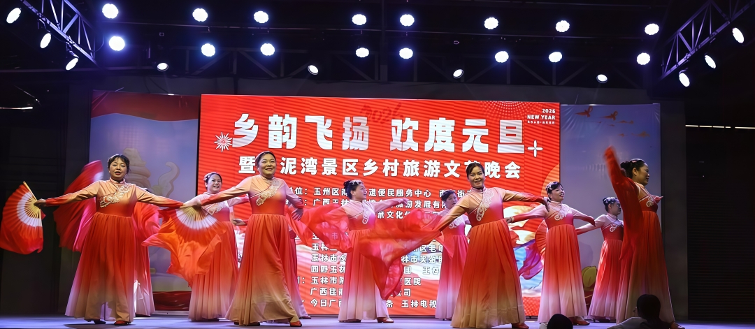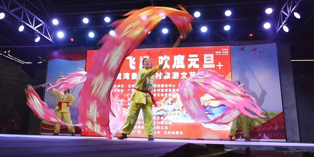 在2026新年的钟声即将敲响之际,玉州区南讧街道广恩村白泥湾乡村旅游景区迎来了一场盛大而别具一格的乡村旅游文艺晚会,活动由玉州区南讧街道便民服务中心指导、广恩村委主办、玉林市白泥湾乡村旅游发展有限公司和玉林汇星演艺团承办的乡村旅游晚会。爱心企业玉林市阳光牙博士口腔医院、广西桂南韵贸易有限公司为晚会鼎力支持,为2026年的元旦增添一味绚丽的色彩,也为乡村旅游发展注入了新的活力。