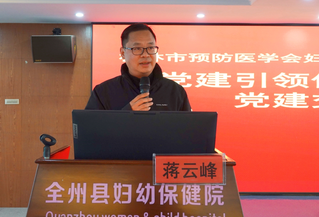 下午在全州县妇幼保健院11楼大会议室开展党建、业务培训,全州县卫健工委委员、县卫健局党组成员、副局长蒋云峰出席活动,医院全体中层领导干部、党员及妇科、产科医护人员等近100人参加活动,党总支副书记唐高峰主持。