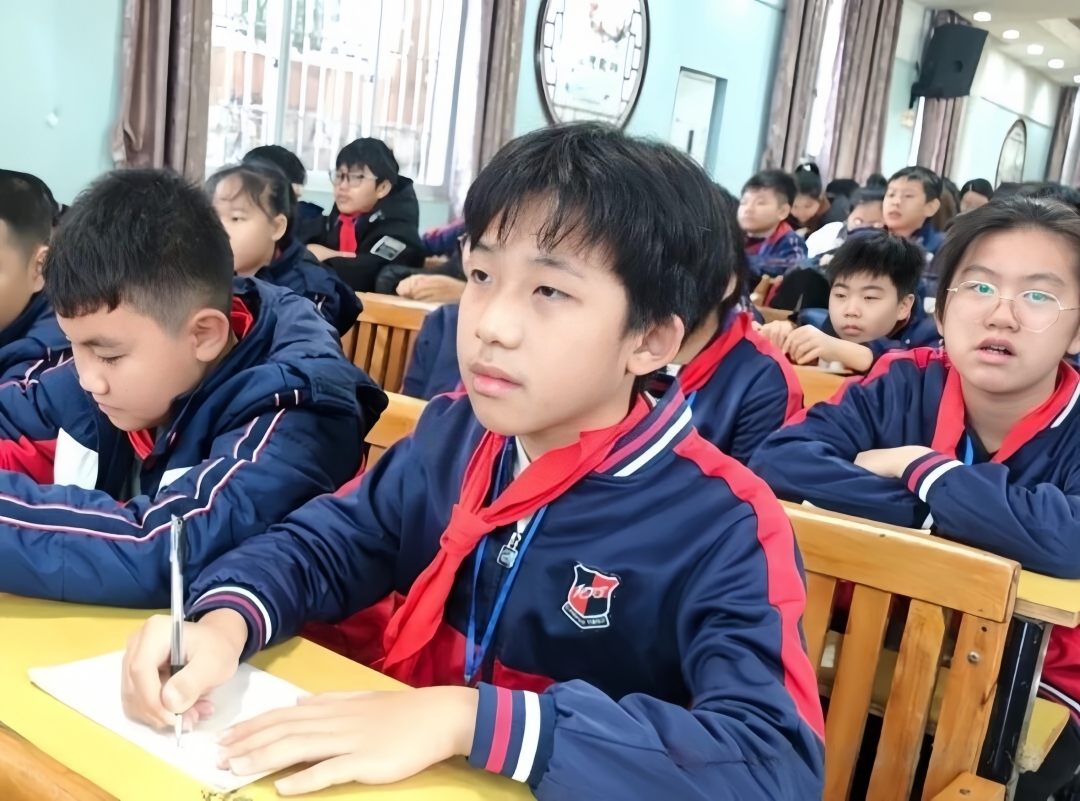 良师传真知,妙语启心智。广西警察学院刑事科学技术系专任教师、全区校园反诈防骗专项宣讲团成员莫雨轩老师为在场师生带来了一堂直击心灵的反诈公开课。莫老师紧扣小学生认知特点,深入浅出,从“小学生主要涉诈类型”剖析陷阱伪装,于“如何防范电信网络诈骗”传授自护锦囊,更在“被骗了怎么办”环节指明应急路径。其言谆谆,其情切切,如清泉涤尘,唤醒防范意识。