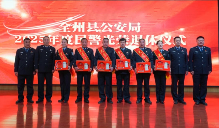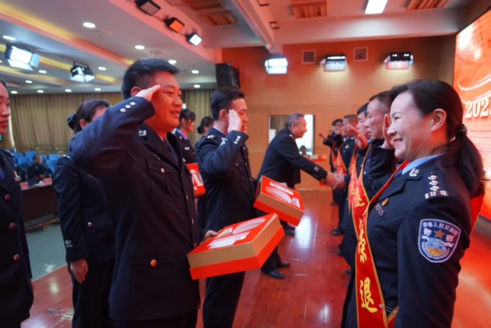 活动伊始,全体人员起立奏唱《中华人民共和国国歌》,激昂的旋律拉开活动序幕。荣休仪式上,礼仪民警向退休民警敬献鲜花,一段纪念视频回顾了他们扎根基层、守护平安的从警岁月。退休民警代表曾卫玲分享感言,局领导为退休民警代表颁发纪念品,传递警营温暖。