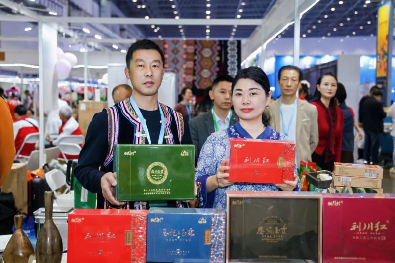 恩施市沐村茶叶专业合作社的展位前始终茶香袅袅,第十一代恩施茶非遗传承人蹇再鹏亲手冲泡的恩施玉露、利川红,以其清鲜与温润的独特气韵,吸引了络绎不绝的品鉴者。作为国家地理标志产品,恩施玉露秉承千年蒸青古法,利川红则承载着近两百年的工夫红茶底蕴。蹇再鹏的坚守,让每一片茶叶都饱含武陵山富硒土壤的滋养与非遗工艺的淬炼。而【北纬30度】数字公共服务平台,正是将这份深山瑰宝推向更广阔天地的桥梁。入驻平台一年间,沐村茶业线上线下整体流水增长达62%。在博览会现场达成意向合作经销商8家,不少客商表示将通过北纬平台持续采购,建立长期合作关系,这让蹇再鹏信心倍增,他也期待平台未来能在数字化叙事与供应链整合上提供更深度的支持,让古老茶香飘得更远。