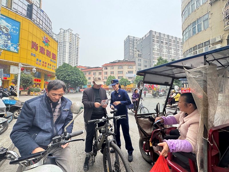 活动中,宣传员以沿街流动形式穿梭于集市人流、摊位间,逐一向经营户和群众发放宣传手册。他们结合近期典型火灾案例,用方言讲解隐患,剖析违规停放、飞线充电、私改电池的危害,同步普及新国标电动车选购、规范充电、电池保养及隐患自查等知识,让安全理念入脑入心。